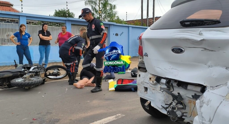 Com a força da batida, o motociclista foi arremessado ao solo e sofreu fratura no fêmur e na patela do joelho, ficando gravemente ferido.