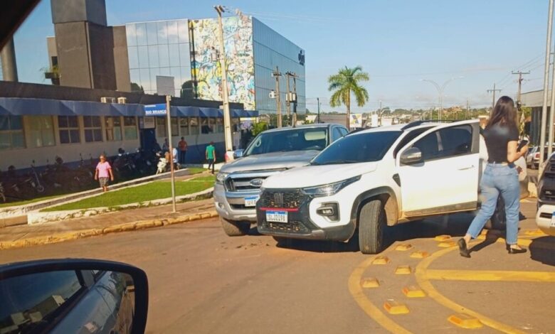 Acidente em Jaru: Ford Ranger colide com Fiat Strada em rotatória movimentada
