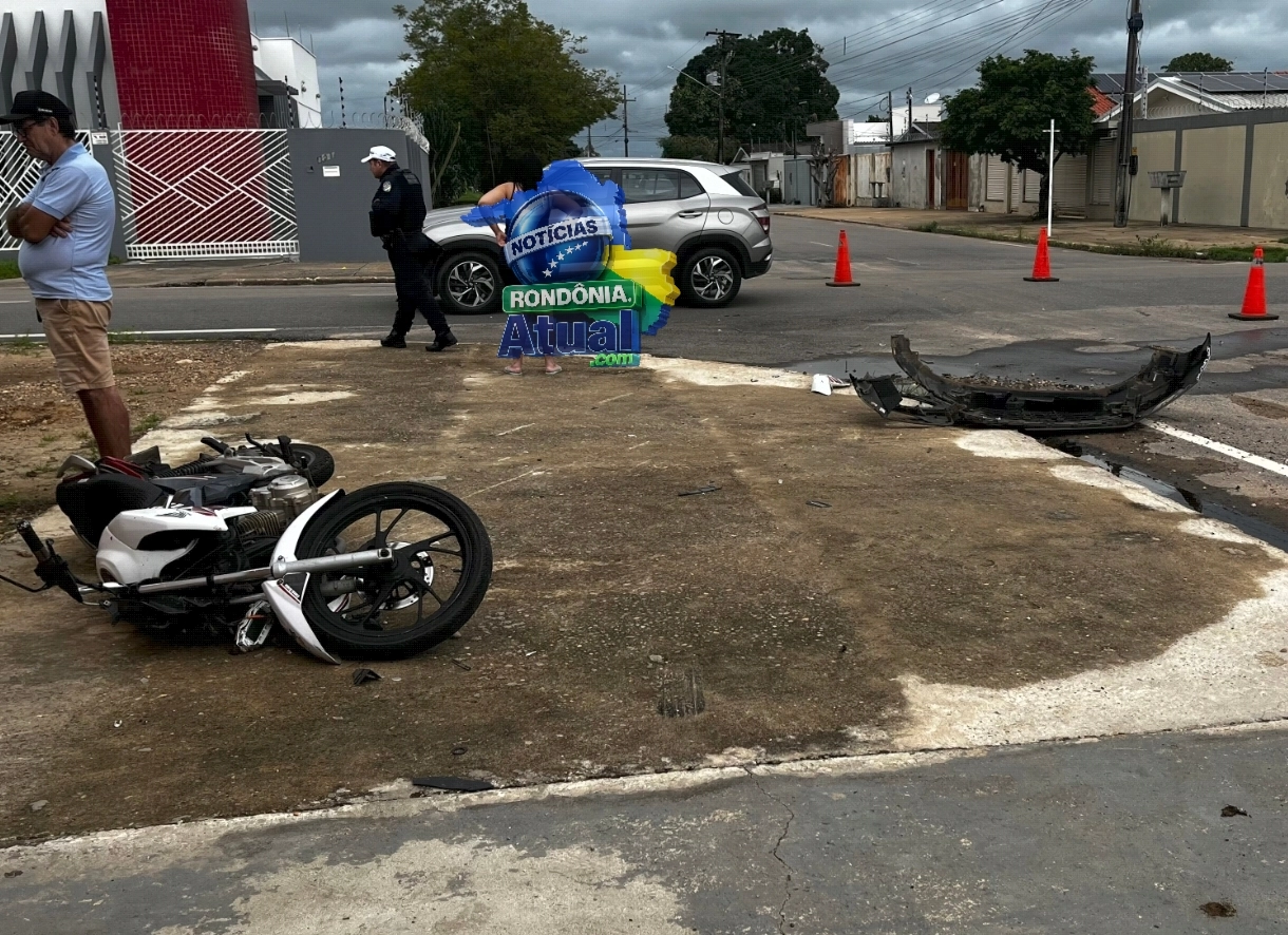 Um acidente entre um carro e uma motocicleta ocorreu no bairro Nova Brasília, em Ji-Paraná, resultando em ferimentos para o motociclista. O incidente aconteceu quando um Hyundai Creta, que trafegava pela Rua Maracatiara, avançou em um cruzamento sinalizado com a placa de “PARE”, colidindo lateralmente com uma Honda CG 160 Titan que circulava pela Avenida Teresina.