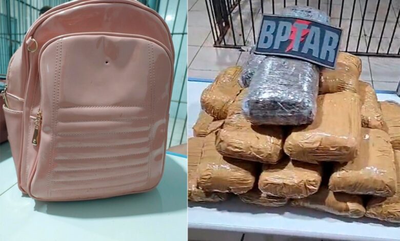 Os policiais perceberam o veículo GM/Spin com a mala coberta por lona amarela e decidiram fazer a abordagem. Durante a verificação das bagagens, a jovem admitiu que a mala de cor rosa continha maconha. Ao inspecionar o conteúdo, os agentes encontraram 20 tabletes da droga escondidos em pó de café, uma tentativa de disfarçar o odor da substância.