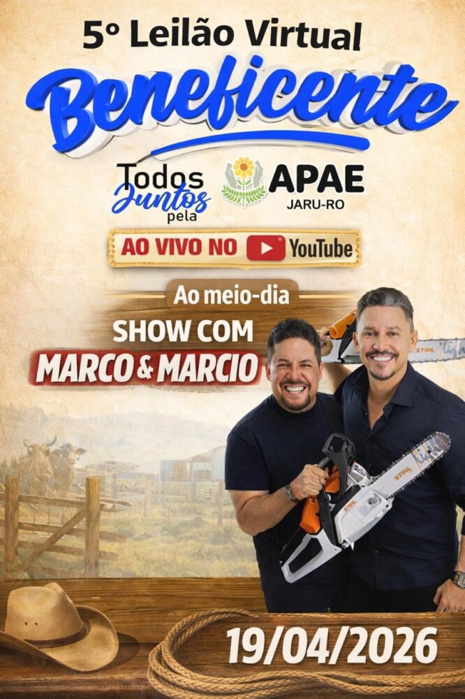 A APAE de Jaru convida toda a comunidade para participar do seu Grande Leilão Online, que acontecerá neste domingo, 19 de abril de 2026, a partir das 11h. O evento será realizado de forma 100% online, proporcionando praticidade e a oportunidade de participação de toda a população, mesmo à distância.