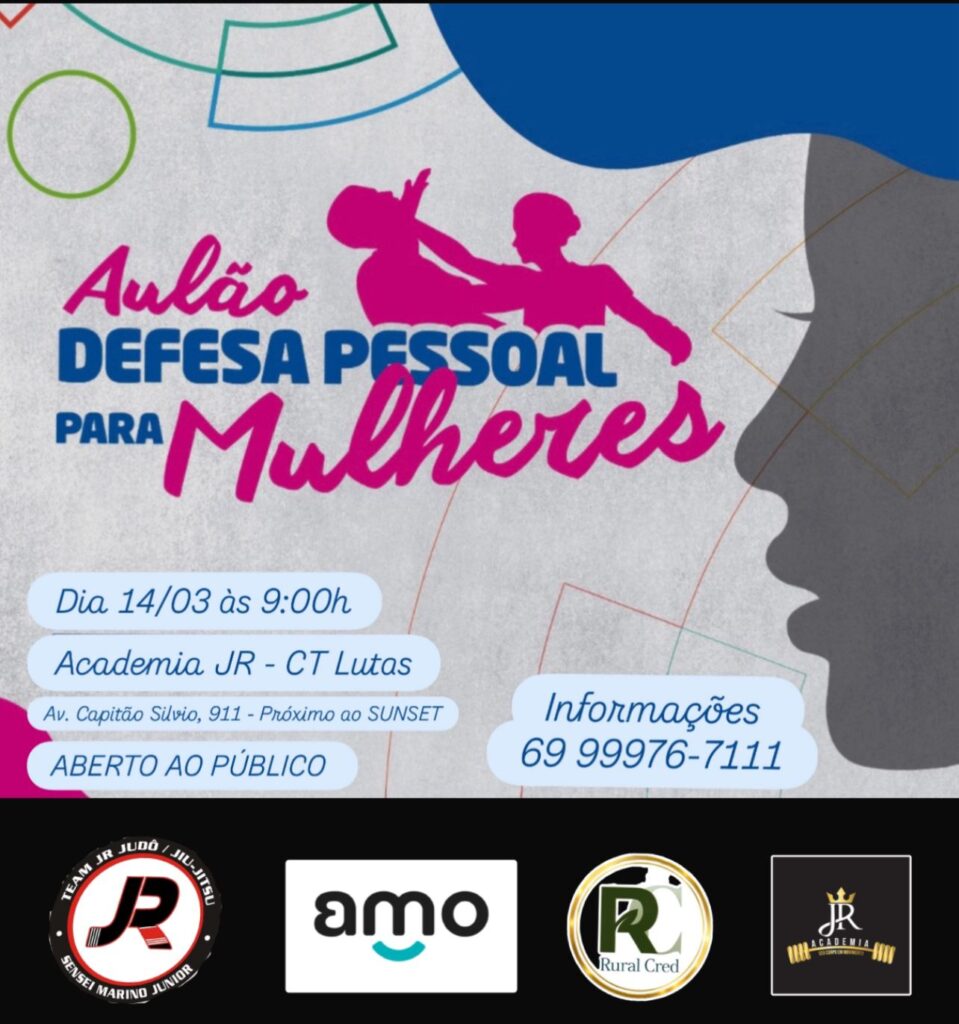 Um aulão de defesa pessoal voltado exclusivamente para mulheres será realizado no dia 14 de março, às 9h, em Ouro Preto do Oeste. A atividade acontecerá na Academia JR – CT Lutas, localizada na Avenida Capitão Silvio, nº 911, nas proximidades do Sunset. De acordo com organização, os participantes poderão desfrutar de uma mesa de café da manhã e sorteios de brindes.