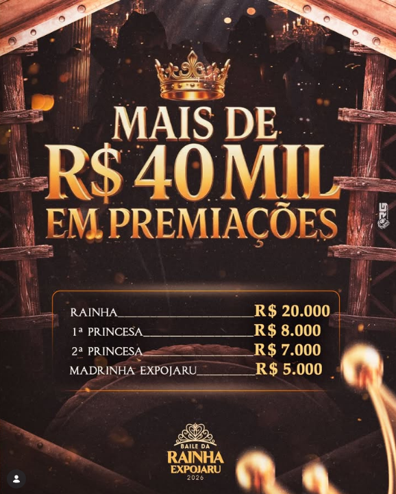 O Baile da Rainha da ExpoJaru 2026 se destaca com uma das maiores premiações já vistas no concurso, superando a marca de R$ 40 mil. Este valor expressivo evidencia a relevância do título dentro de uma das festas mais importantes do agronegócio na região, atraindo a atenção de muitas candidatas.