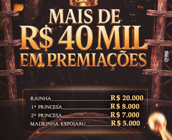 Segundo a organização do evento, a vencedora do concurso, que conquistará o título de Rainha, receberá R$ 20 mil. Além disso, a 1ª Princesa será agraciada com R$ 8 mil, a 2ª Princesa com R$ 7 mil e a Madrinha do Rodeio com R$ 5 mil, totalizando uma premiação que promete mobilizar a participação de diversas concorrentes.