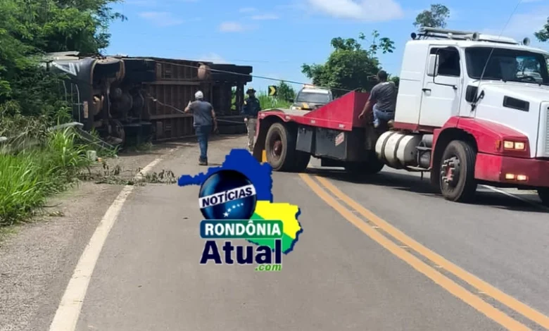 Um acidente de trânsito foi registrado na manhã deste domingo (21) na BR-429, a cerca de 15 quilômetros do município de Presidente Médici. Um caminhão que seguia no sentido da cidade saiu da pista após o condutor perder o controle da direção.