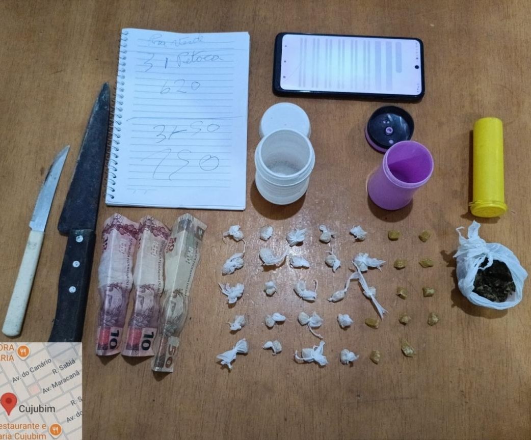 Durante a busca na residência, os policiais encontraram substâncias entorpecentes escondidas nas proximidades do telhado, incluindo pedras de crack e uma porção de maconha. Além disso, foram apreendidos dinheiro em espécie, objetos utilizados para o fracionamento das drogas e anotações que indicavam a comercialização. Com as evidências em mãos, o suspeito confessou que estava vendendo entorpecentes no local há cerca de um mês, detalhando até mesmo a dinâmica de suas vendas. A atuação precisa da equipe foi fundamental para descobrir o esconderijo e coletar provas robustas.