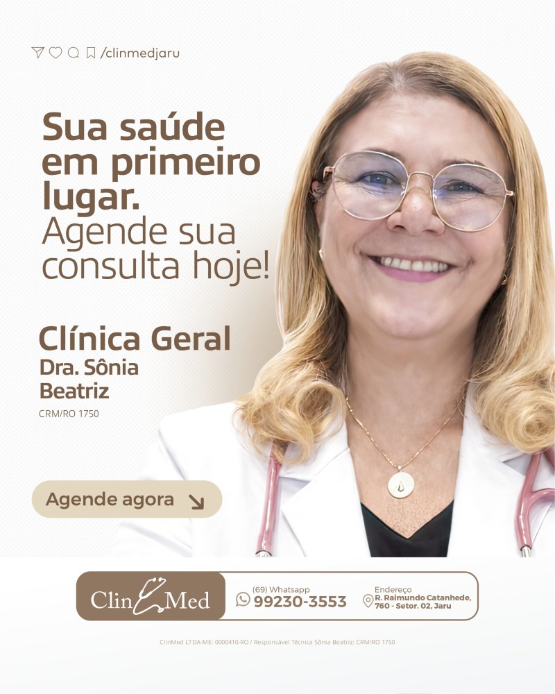 A ClinMed tem o prazer de anunciar que a renomada Clínica Geral da Dra. Sônia Beatriz agora atenderá de segunda a sábado. Além de oferecer um atendimento clínico de excelência, a Dra. Sônia também realiza a coleta de exames preventivos, garantindo que você tenha acesso a cuidados essenciais de saúde. Se você busca um atendimento imediato e de qualidade, não hesite em visitar a ClinMed e consultar-se com essa profissional altamente capacitada.