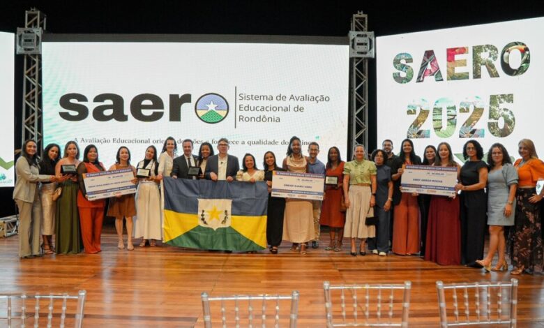 Entre as escolas que se destacaram na cerimônia, estão a Escola Abraão Rocha, que recebeu prêmios tanto pelo desempenho no SAERO quanto pela excelência na alfabetização, além das escolas Maria Gomes e Jaru-Uaru. A avaliação do SAERO foi aplicada a alunos do 2º ano de alfabetização e do 5º ano, com a participação de mais de 120 mil estudantes de 796 escolas em Rondônia, abordando conteúdos de Língua Portuguesa e Matemática. A solenidade contou ainda com a presença da secretária municipal de educação, Cleide Gonçalves Prates, diretores e professores das instituições premiadas, além da equipe pedagógica da Secretaria Municipal de Educação – Semed.
