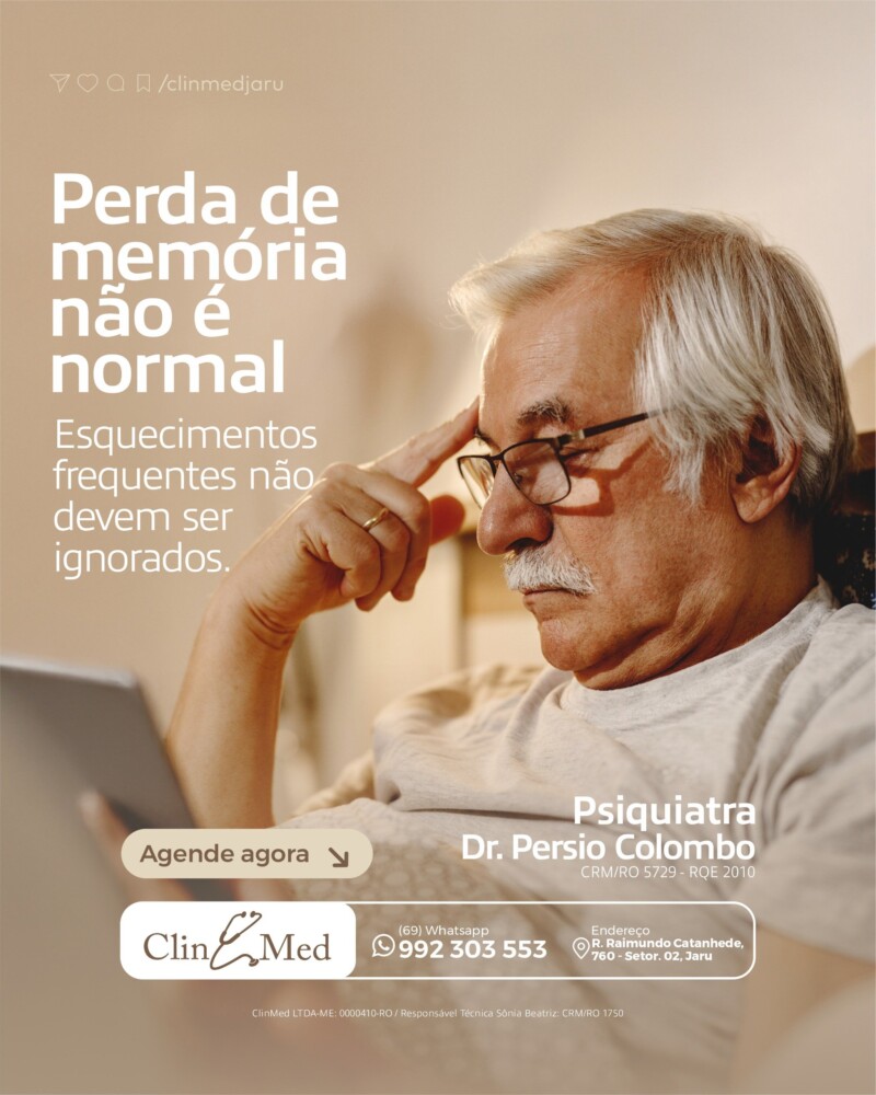 Na Clin Med, você encontrará atendimento especializado para investigar e tratar alterações de memória, com um cuidado individualizado e uma equipe preparada para oferecer suporte completo, desde a avaliação até o tratamento adequado. Cuidar da saúde mental e cognitiva deve ser uma prioridade em todas as fases da vida. Manter uma rotina equilibrada, com alimentação saudável, prática de atividades físicas, estímulo à leitura e interação social, são medidas que ajudam a preservar a memória. Se os esquecimentos estão se tornando frequentes, não ignore os sinais. Buscar orientação especializada pode fazer toda a diferença.