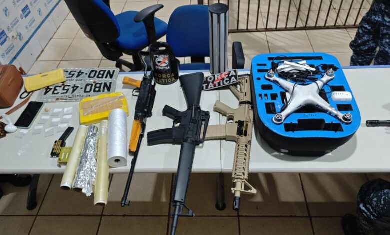 Os policiais iniciaram um acompanhamento à distância e, ao abordarem a suspeita na Rua Daniela, encontraram em sua bolsa uma porção de substância semelhante à cocaína. J.F.S. revelou que havia mais drogas em sua residência. Durante a busca, os agentes apreenderam cerca de um quilo de cocaína prensada, um fuzil calibre .22, além de uma motocicleta Honda XRE amarela, que estava com restrição de roubo.