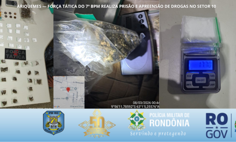 Durante a madrugada do dia 8 de março de 2026, a Força Tática do 7º Batalhão da Polícia Militar de Ariquemes, em Rondônia, intensificou suas ações de combate ao tráfico de drogas no Setor 10. A equipe policial, ao perceber movimentação suspeita em frente a um imóvel já alvo de denúncias, abordou os indivíduos presentes, que tentaram escapar ao notar a presença da polícia.