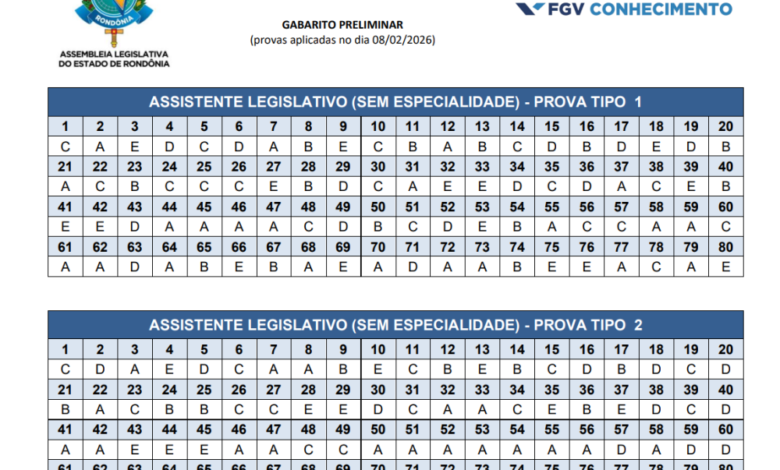 Gabaritos do Concurso da Assembleia Legislativa de Rondônia Já Estão Disponíveis