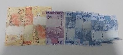 O suspeito apresentava escoriações no rosto, nariz e pé, além de estar completamente molhado, resultado da fuga pelo córrego e do ataque dos cães. Durante a revista, os policiais encontraram os R$ 75 em seu bolso, além de um boné azul, uma jaqueta preta, dois anéis e uma corrente. Ele foi preso em flagrante pelos crimes de roubo e resistência, recebeu informações sobre seus direitos constitucionais e foi encaminhado ao Hospital Ana Adelaide para atendimento médico, antes de ser apresentado à autoridade policial.