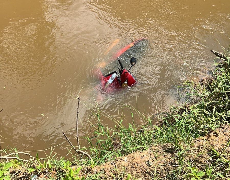 A guarnição foi acionada após uma denúncia de que um indivíduo teria jogado uma motoneta no Rio Mororó. Ao chegarem ao local, os policiais confirmaram a informação e encontraram o veículo parcialmente submerso. A situação exigiu uma resposta imediata, e a equipe começou a realizar diligências nas redondezas.