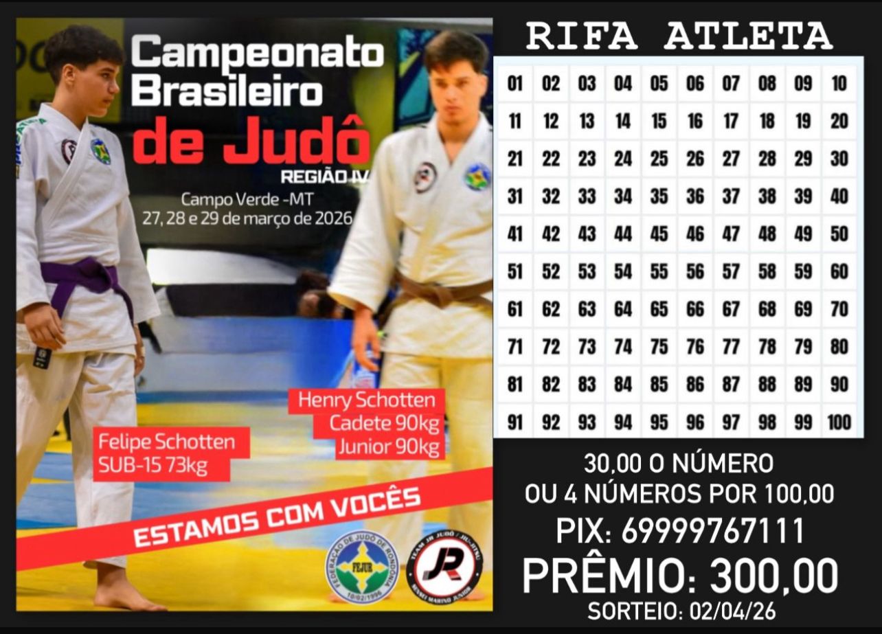 A iniciativa tem como objetivo mobilizar a comunidade e apoiadores do esporte local, contribuindo para que os atletas possam representar Rondônia no cenário nacional do judô. Interessados podem colaborar adquirindo números da rifa por meio de pagamento via Pix disponibilizado pelos organizadores.