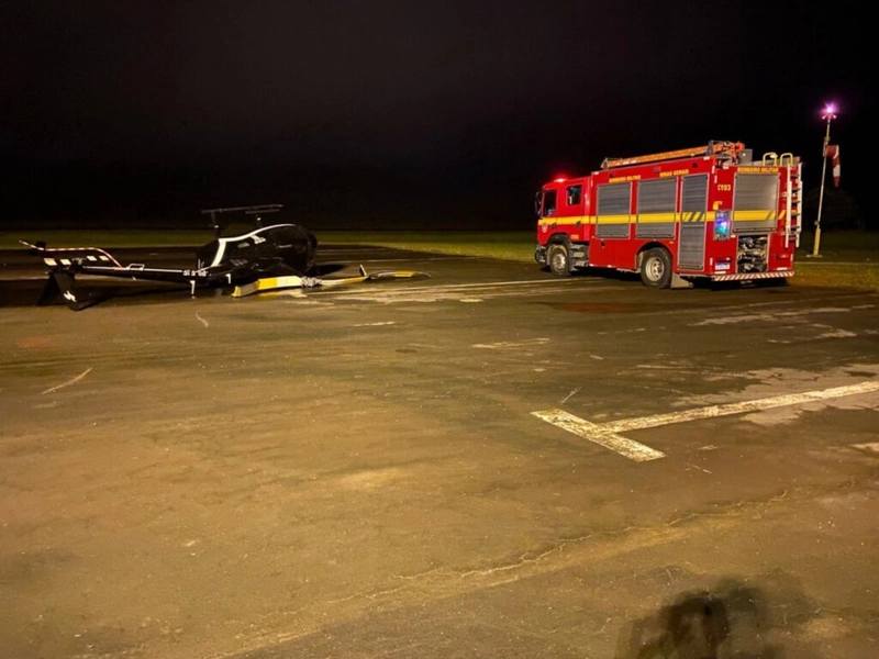 O helicóptero envolvido na ocorrência é um modelo R66, ano 2023. Com a queda, houve pequeno vazamento de combustível, o que levou ao acionamento do Corpo de Bombeiros. A equipe realizou os procedimentos de segurança e a limpeza da pista, evitando riscos de incêndio ou explosão.