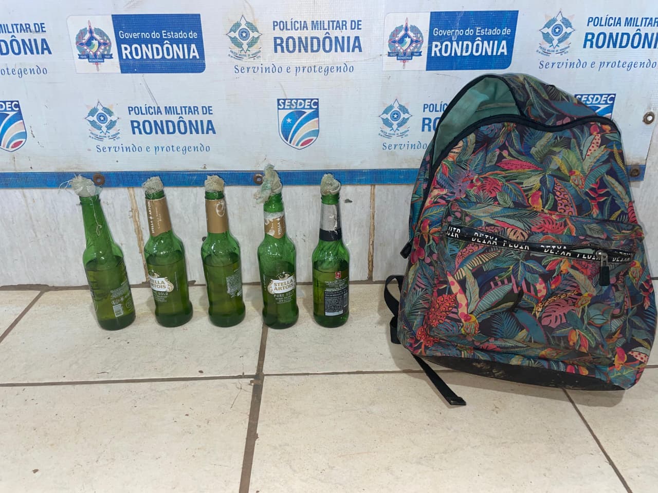 Na madrugada de quinta-feira (12), a Polícia Militar de Rondônia apreendeu um menor de 15 anos em flagrante por tentativa de incêndio em frente à empresa “VIP Net”, no bairro Escola de Polícia, em Porto Velho. A ação foi desencadeada após populares deterem o adolescente que estava prestes a lançar coquetéis molotov contra o estabelecimento. A guarnição encontrou com ele uma mochila contendo cinco artefatos incendiários.