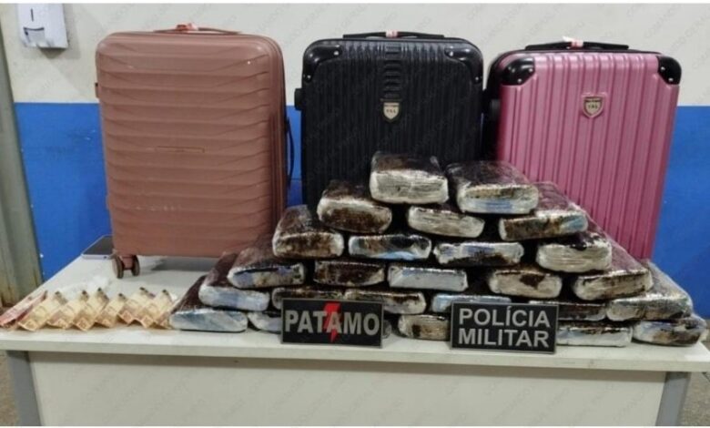 A abordagem aconteceu por volta das 22h30, quando o ônibus, que seguia de Pimenta Bueno (RO) para Belo Horizonte (MG), estacionou na rodoviária. Durante a revista nas bagagens da passageira identificada como D. F. L. M, os policiais encontraram 27 tabletes de maconha, totalizando 28,572 quilos, além de R$ 371,10 em espécie e uma pequena quantidade de crack, que a mulher alegou ser para consumo próprio.