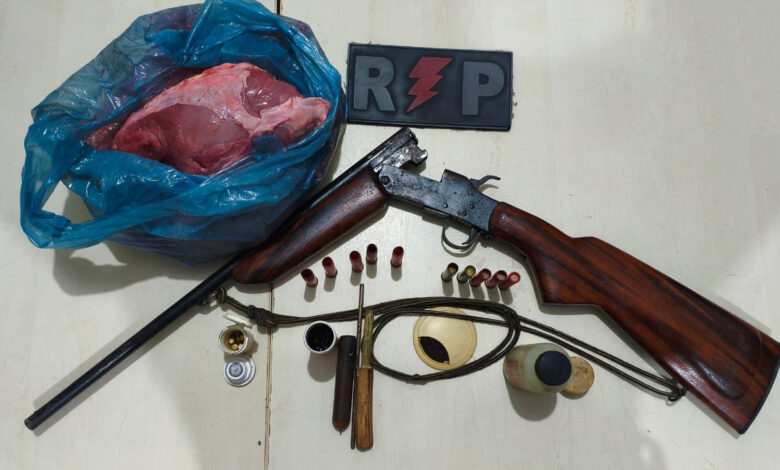 Polícia Militar apreende arma e carne de animal silvestre após disparos em área rural