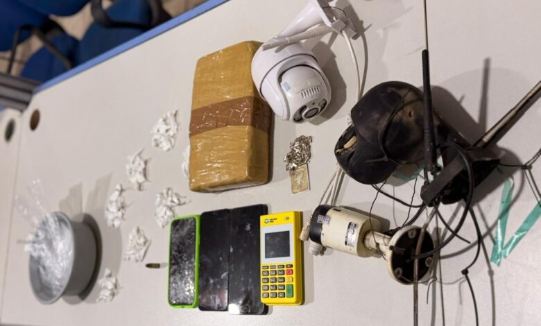 As equipes policiais intensificaram o policiamento na região e identificaram movimentação suspeita em um imóvel já conhecido por denúncias relacionadas ao tráfico. Ao se aproximarem, os policiais visualizaram substâncias entorpecentes expostas no interior da residência, o que motivou a intervenção imediata. No local, foram apreendidas 66 porções de substância análoga à cocaína, aproximadamente um quilo de substância análoga à maconha, além de munição calibre 9mm, aparelhos celulares, câmeras de monitoramento, máquina de cartão e materiais utilizados para o preparo e comercialização de entorpecentes.