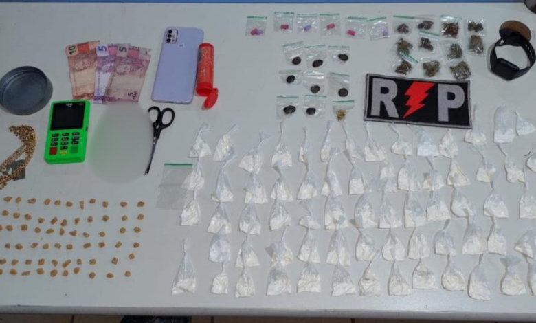 Após um breve acompanhamento, o suspeito foi alcançado e abordado, mas nada de ilícito foi encontrado em sua posse. Contudo, durante as buscas na residência, os policiais descobriram uma quantidade significativa de substâncias entorpecentes, já fracionadas e prontas para a venda. Entre os itens apreendidos estavam invólucros com cocaína, maconha, crack, haxixe e LSD, além de materiais utilizados para o preparo e comercialização das drogas, como uma máquina de cartão e utensílios para fracionamento.