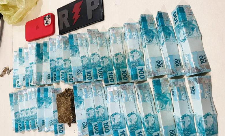 O veículo foi seguido até a rua T-26, nas proximidades da antiga pista de kart, onde parou em frente a uma oficina. Apesar da resistência do suspeito, a abordagem foi realizada com o apoio de uma segunda guarnição. Durante a revista pessoal, os policiais encontraram um tablete de substância análoga à maconha, pesando cerca de 100 gramas, além de R$ 3.516,00 em dinheiro.
