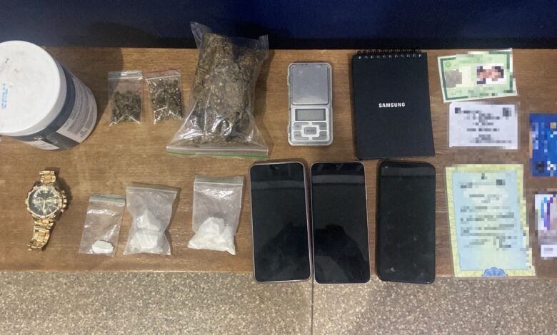 Dentro do imóvel, a equipe apreendeu aproximadamente 50 gramas de cocaína, cerca de 200 gramas de maconha, uma mini balança digital, um caderno com anotações típicas da contabilidade do tráfico e aparelhos celulares. Os entorpecentes estavam escondidos em um guarda-roupa, enquanto os demais materiais estavam organizados em um rack na sala, evidenciando uma estrutura bem montada para o comércio de drogas.