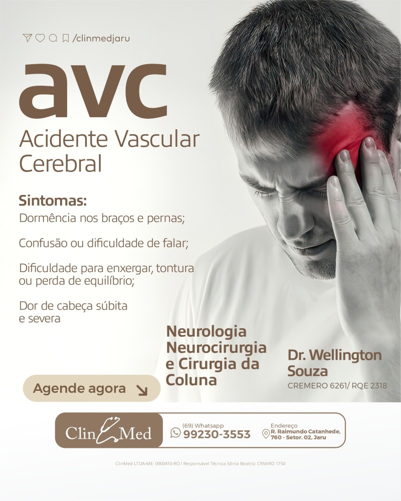 A Clin Med oferece atendimento especializado nas áreas de neurologia, neurocirurgia e cirurgia da coluna, priorizando diagnósticos precisos e tratamentos adequados. A orientação é clara: ao perceber qualquer sintoma relacionado ao AVC, a pessoa deve buscar ajuda médica sem demora.