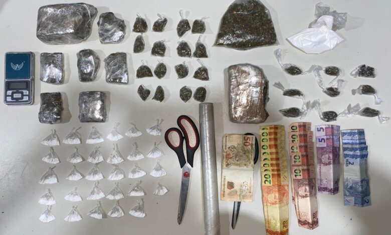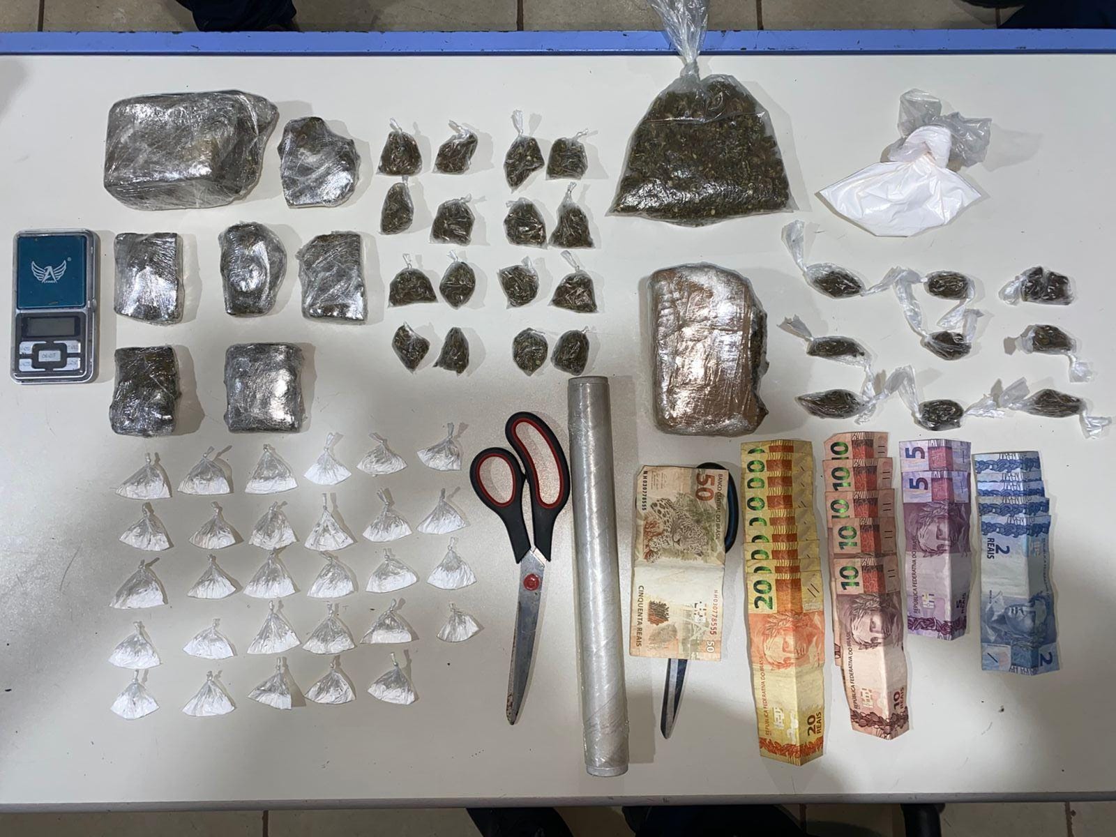 Dentro do apartamento, a polícia encontrou 29 porções de uma substância que aparentava ser cocaína, além de várias porções e tabletes de maconha. Materiais como tesouras e plástico filme, utilizados para embalar entorpecentes, também foram apreendidos. Em continuidade às diligências, no apartamento 404 do mesmo bloco, foram localizadas mais porções de maconha e cocaína, R$ 300 em espécie e um celular. A responsável pelo imóvel não foi encontrada.